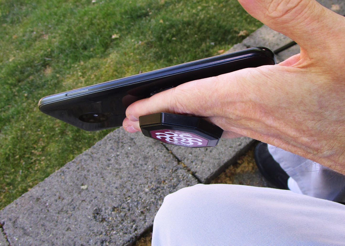 This ergonomic smartphone/tablet accessory adapts to the shape and position of your hand on the fly, maintianing a comfortable secure grip on your hand as you use your phone.